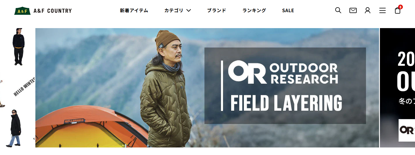 A&F COUNTRYは、日本発のアウトドア・ライフスタイル用品を豊富に取り扱うオンラインショップおよびリアル店舗ネットワークです。