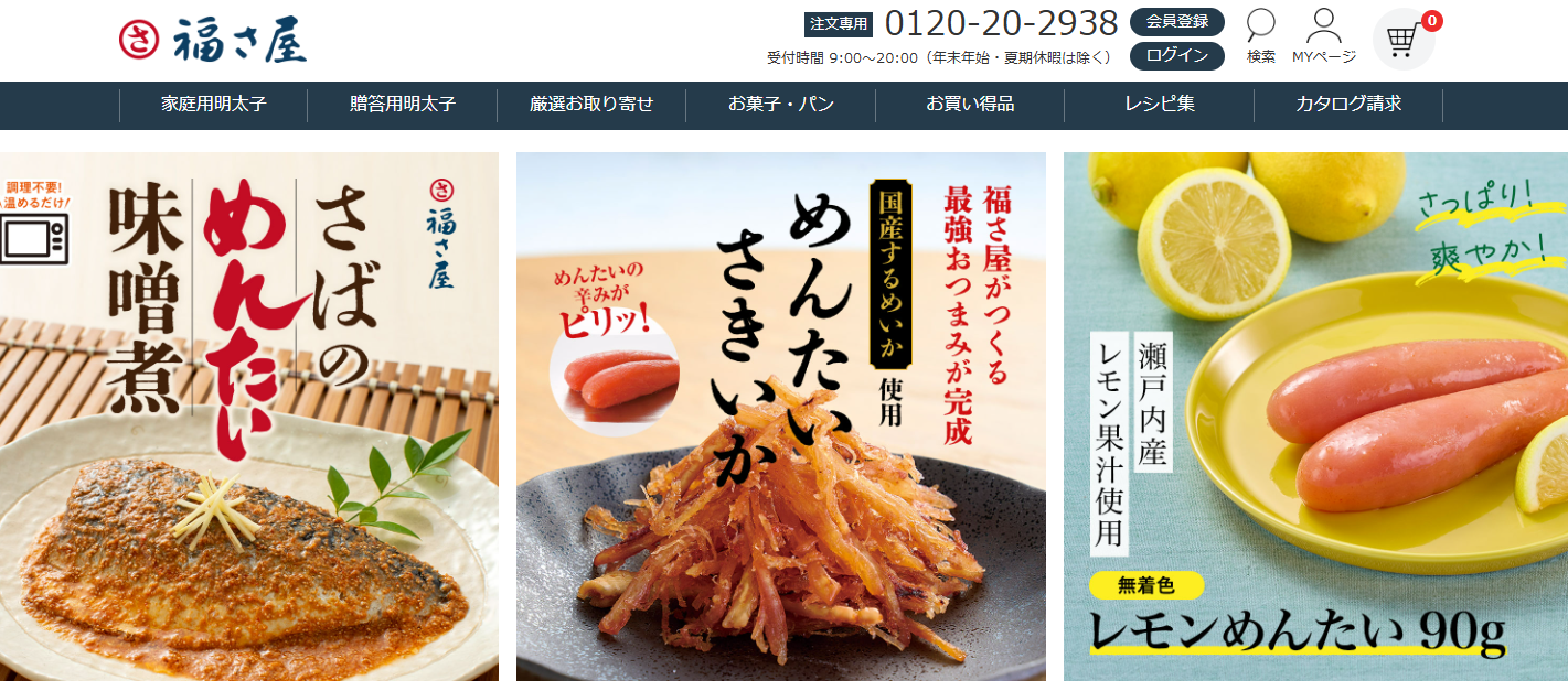 公式サイトは、バリエーション豊かな明太子と、彩り豊かな料理の写真が綺麗に並べられていて、見ているととても美味しそうに見えてきてしまいます