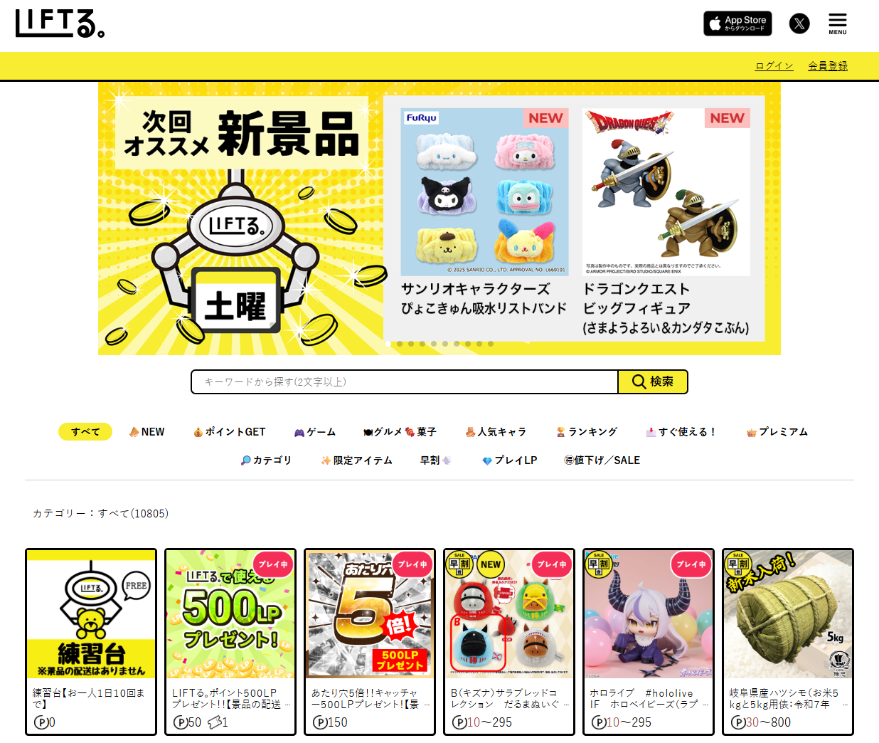 LIFTるでは、数千〜1万以上の景品が用意されており、選べる景品数の多さが魅力です。