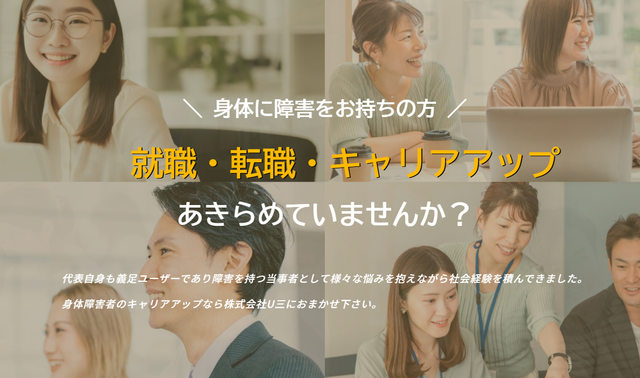 株式会社U三(ユウサン)は、身体に障害をお持ちの方の就職・転職・キャリアアップを支援する専門サービスを提供する会社です。