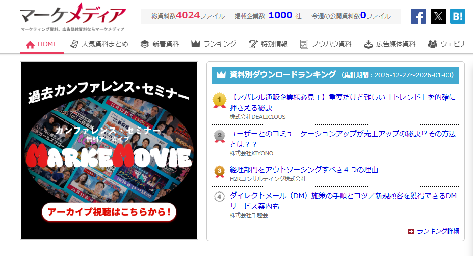 無料の資料ダウンロードサイト「マーケメディア」