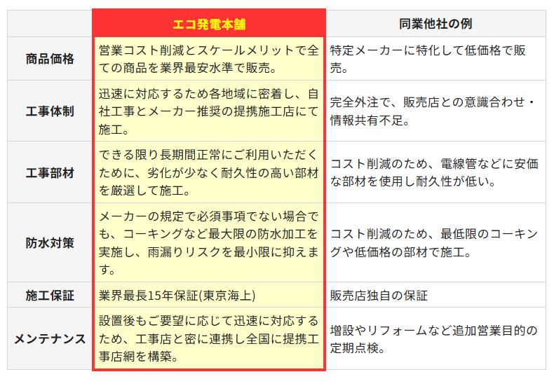 エコ発電本舗では、製品ごとの価格帯や特徴を整理した情報が掲載されており、複数の選択肢を比較しながら検討しやすくなっています。