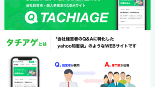 会社経営者のQ&Aサイト「タチアゲ」|サービス紹介とおすすめポイント「タチアゲ」は、これから起業を考えている方や会社経営の悩みを抱える経営者の方に向けた経営支援・Q&Aプラットフォームです。専門家に直接相談できるだけでなく、起業・経営にまつ...